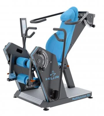 5X Multifunction machine has five exercises: legs are exercised with Leg Extension and Curl, arms and shoulders with Push Up, Pull Down and Chest Press exercises. There are range limiters in Leg Extension/Curl and Push Up/Pull Down exercises. In all five there are isometric testing sensor attachment for using of Performance Recorder -device. The best benefit of the machine is that it doesn’t require a lot of space but still there are five different exercises. Changing between exercises is quick and easy by touch screen display.
