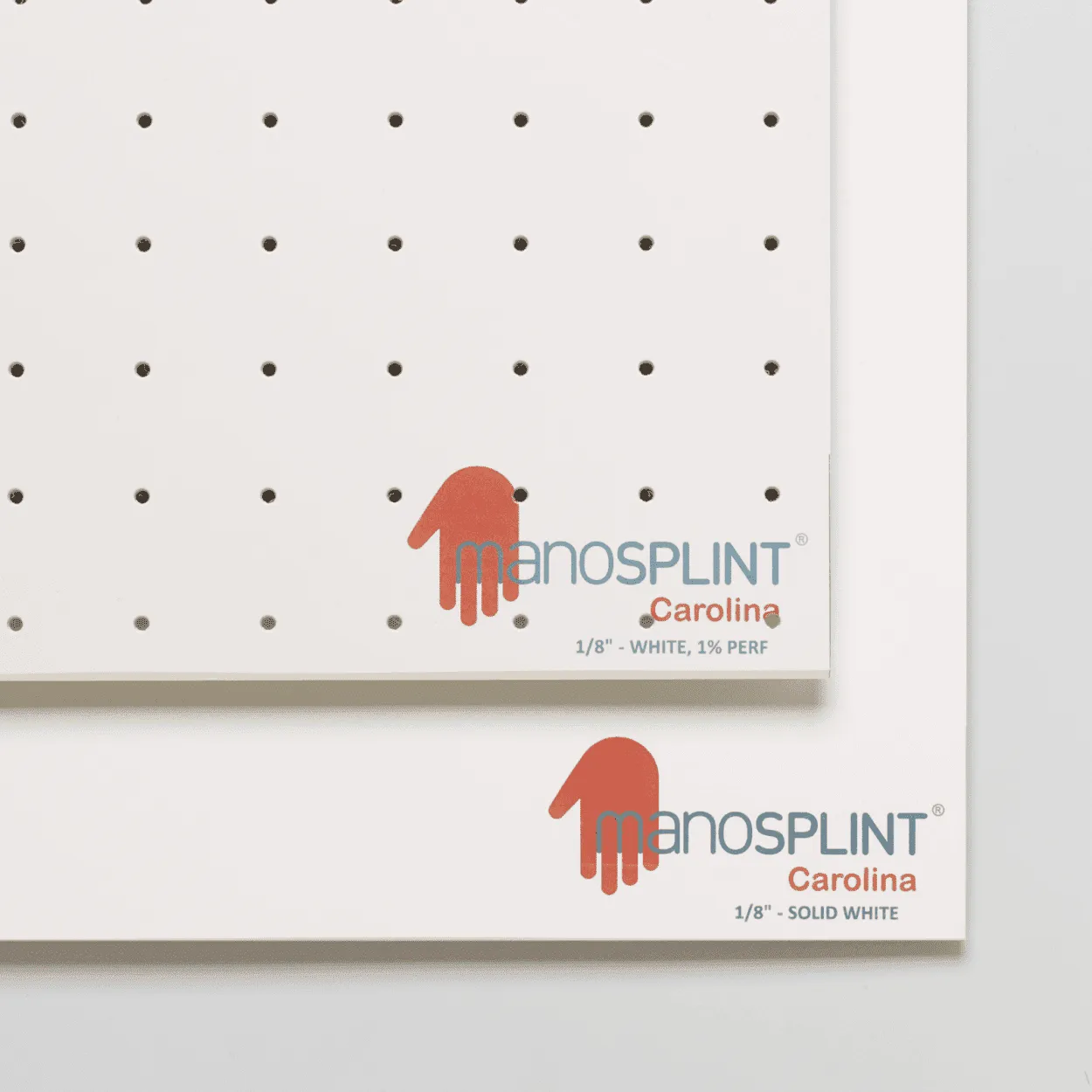 Carolina is a splinting material in our range of Mansoplint® hand therapy materials. It has great rigidity, holding its shape against the patient or dynamic components.