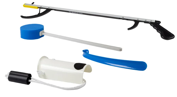 Hip kits include a variety of aids-to-daily living (ADL) products in one convenient package. Items help people avoid bending at the hip.