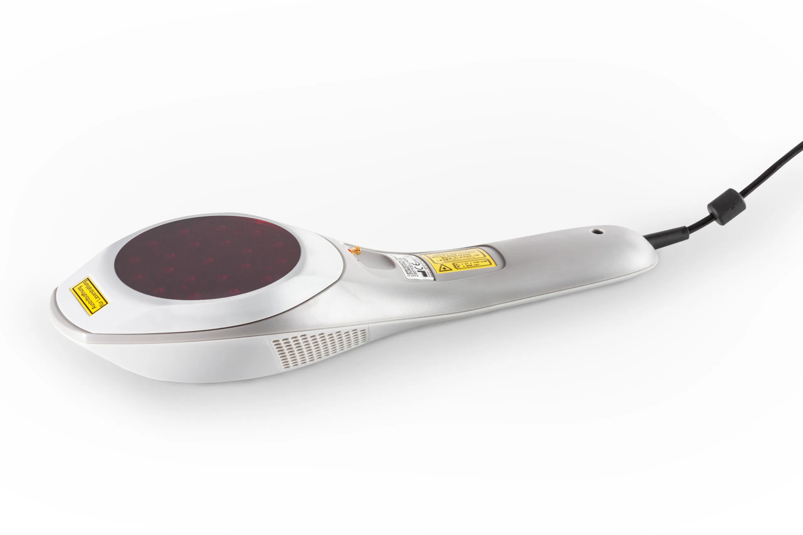The therapeutic laser shower LASS-Expert is used for application on larger surfaces (e. g., in trauma, arthropathy, hypertonia of large muscles and dermatology). It works with 21 laser diodes (2.100 mW Power output max.) and offers continuous output, alpha, Nogier, Bahr, Reininger and multifrequency or freely selectable frequencies (software extension optionally available). The infrared diode laser with a wavelength of 808 nm provides the best values of penetration depth and biostimulation effi ciency according to latest scientific conclusions.