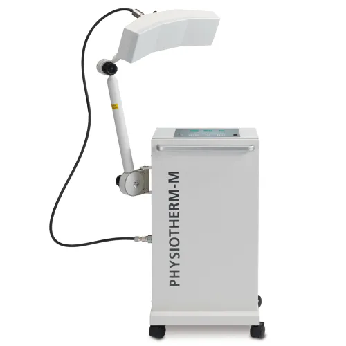 The modern PHYSIOTHERM-M microwave therapy unit enables continuous and pulsed energy output for thermal and athermal applications and features automatic output limitation. The extremely well-shielded, high-frequency connection cable provides troublefree operation. The smooth running castors with latches ensure good mobility and secure positioning of the PHYSIOTHERM-M.