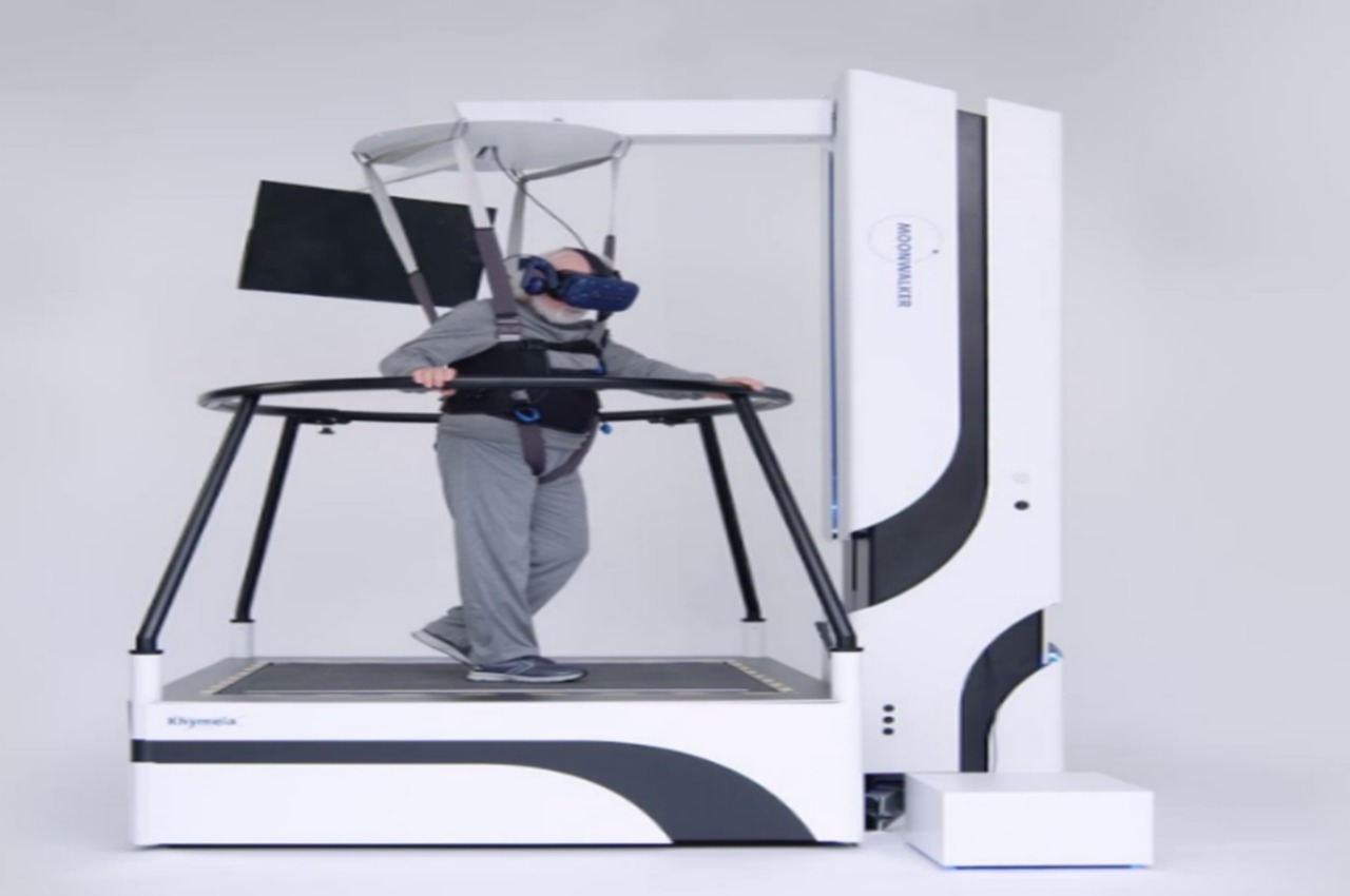MoonWalker is a unique revolutionary technology that allows, among many others unique features, to walk in a completely natural way in every direction at 360 degrees, including backwards and sideways, remaining still on the platform; amazingly, the platform is activated and controlled in real time by the patient's body movements.