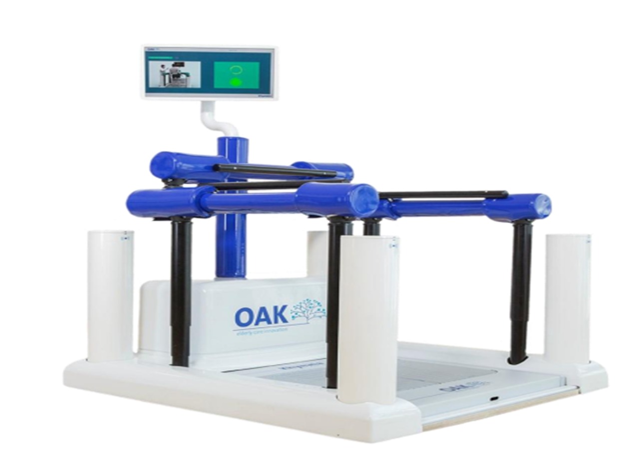 OAK is the innovative integrated system for the evaluation and prevention ofOAKis the innovative integrated system for the prevention of falling risks. The system generates specific prevention exercises according to the eventual specific patient's falling risk. The technological OAK platform is fully sensorized to allow precise and detailed rehabilitation activity.The system is equipped with 3D wearable sensors to perform kinematic tracking base doninertial technologies.The OAK technology allows in comparable accuracy during the postural trainings. The scoring system includes: Dynamic info about the correct postural position for the execution of each it emof the scale; Info in real time about the execution of each it emand the acquired data; Acquisition of the kinematic variables,including the forces applied on the handle barsand the balance system data; •Analysis of the score for each item for the therapist's evaluation of the falling risk rate.