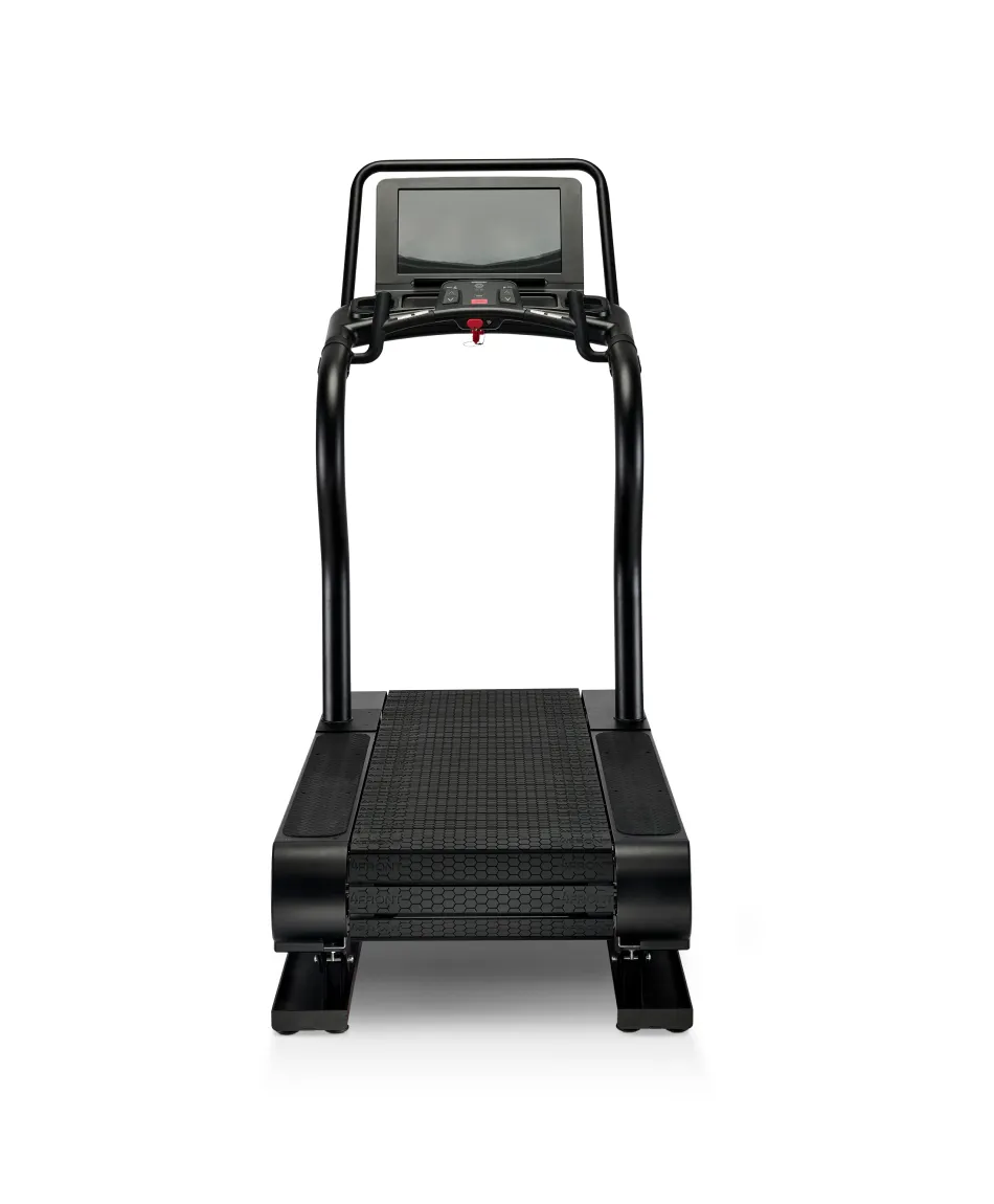 The Woodway Ridgerunner takes the 4Front platform and extends the incline to 35% elevation. The Ridgerunner can effectively replace a gym’s stair-stepper, elliptical, or incline trainer, while still offering all the versatility of a motorized treadmill. Our slat belt has always provided comforting benefits to the lower-posterior chain, but the Ridgerunner will intensely engage this muscle group and take a treadmill workout to new heights.