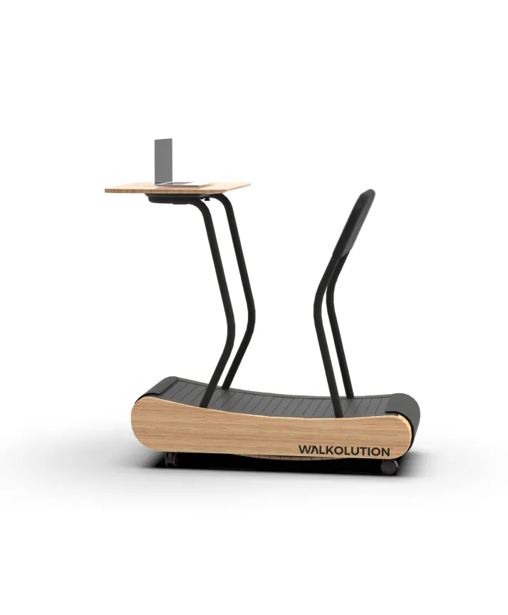 The Walkolution Wanderlust treadmill works mechanically by means of slats that glide slowly on high-quality ball bearings. The treadmill is whisper-quiet, whether you stroll, walk or stop – you decide, intuitively and naturally, from step to step. The desk is adjustable to a walking or standing position.